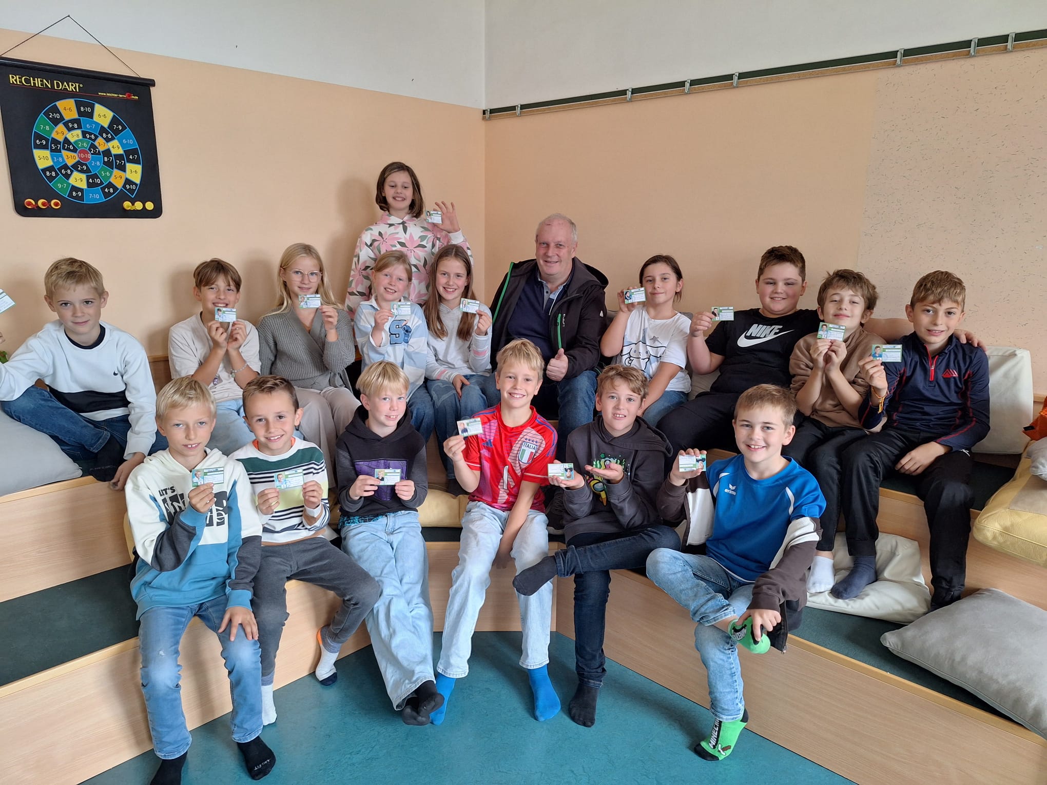Nach intensiver theoretischer und praktischer Vorbereitung konnten die Kinder ihre erworbenen Fahrradführerscheine freudig von Herrn Inspektor Schwarz entgegen nehmen.