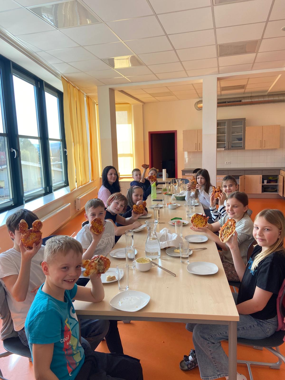 Vor den Osterferien durfte die 3B mit tatkräftiger Unterstützung zweier Mütter eine köstliche Osterjause zubereiten. Ein besonderes Highlight war die Osterhasen-Pizza, die jedes Kind selbst gestalten und backen durfte. Mit viel Freude und Kreativität entstanden dabei viele leckere Kunstwerke.